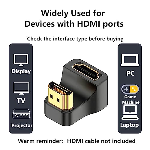 Design a forma di U con angolo di 180 gradi: questo adattatore HDMI a forma di U con angolo di 180 gradi, allevia l'usura delle porte HDMI delle apparecchiature a causa del collegamento e dello scollegamento costanti o quando i cavi HDMI pesanti mettono a dura prova i connettori. Questi tipi di adattatori a U possono essere ideali per quando si cerca di collegare un cavo HDMI in uno spazio ristretto o ristretto