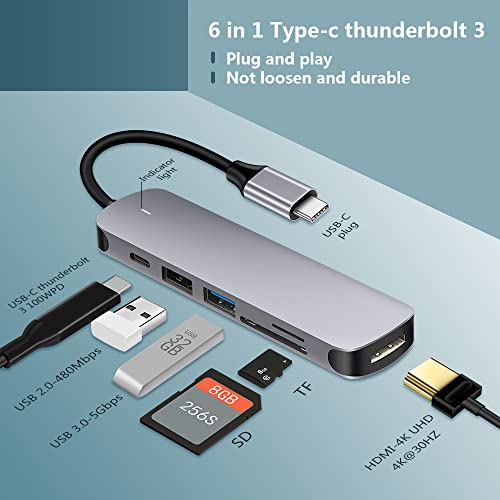 ShanFeng Adattatore USB C per MacBook Pro / Air, adattatore 6 in 1 con uscita HDMI 4K, lettore di schede SD/TF, 100 W PD compatibile con Surface Pro 7, iPad Pro, e altri dispositivi di tipo C