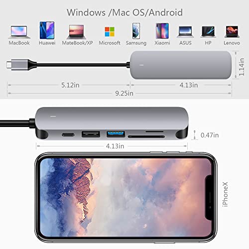 Uscita video 4K Ultra HD: l'hub USB C HDMI supporta un'elevata risoluzione fino a 4K 3840 x 2160 a 30Hz e trasmette video 4K o Full HD 1080p direttamente su HDTV, monitor o proiettore. Soddisfa le tue esigenze di utilizzo simultaneo di 2 schermi. Retrocompatibile con risoluzioni 2K/1080P/720p.