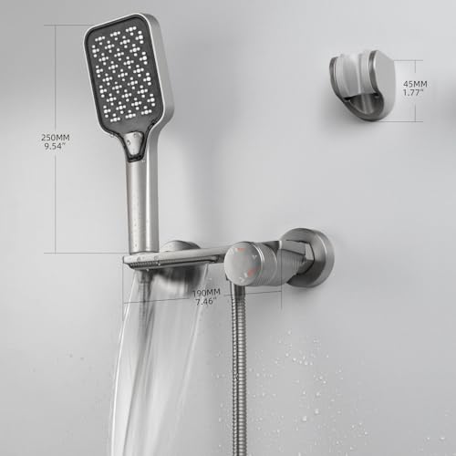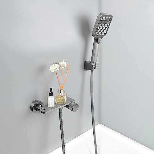 SHANFO Rubinetto Vasca da Bagno a Cascata, Miscelatore Vasca da Bagno con Doccetta,Rubinetto Doccia in Ottone, Grigio, 7Y7OK