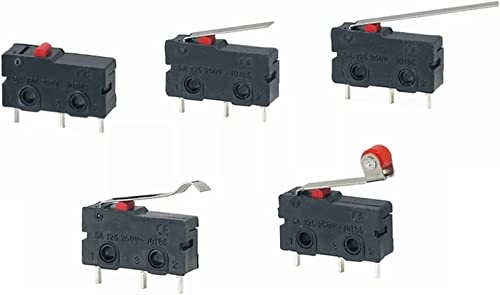 SHANGMAOYO Micro Switch 5pcs Mini Micro Limit Switch No NC 3 Pin PCB Terminali SPDT 5A 125V 250V 2 Leva a rulli da 9 mm Azione scattata Push MicroSwitches (Color: PCB Pin 28mm Lever)