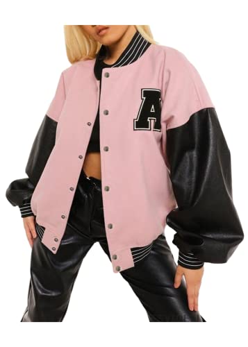 ShangSRS Bomber Jacket Giacca Donna da Baseball Varsity Jacket Vintage Streetwear Lettera con Tasca Outwear Cerniera Giacca College Sweat Jacket (rosa, XL)