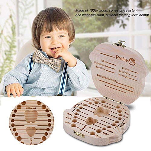 ShangSRS Denti Scatola Realizzata a Mano in Legno Durevole Denti Box Denti Decidui Salva Ricordi di Bambina (Ragazza-Inglese)