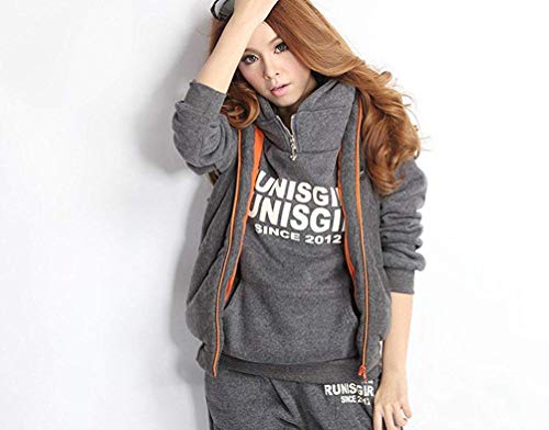 ShangSRS Donna 3 Pezzi Felpa Tute Pullover Spesse Felpa Cappotto Invernale Tuta Training Ispessisce Hoodie Giacca Gilet + Felpa con Cappuccio + Pantaloni (Grigio Scuro, M)