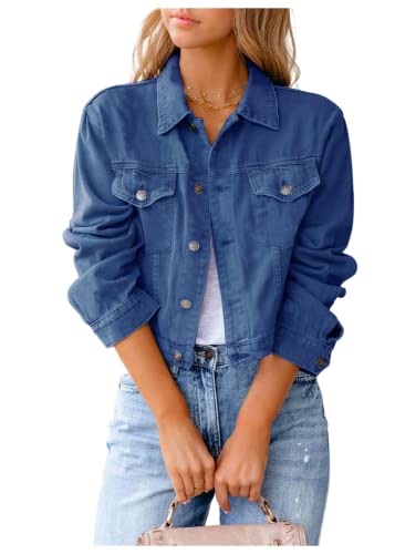 ShangSRS Giubbotto corto in denim autunnale e invernale Top a maniche lunghe Colore puro casual Giacca in Jeans Donna (S, blu scuro)