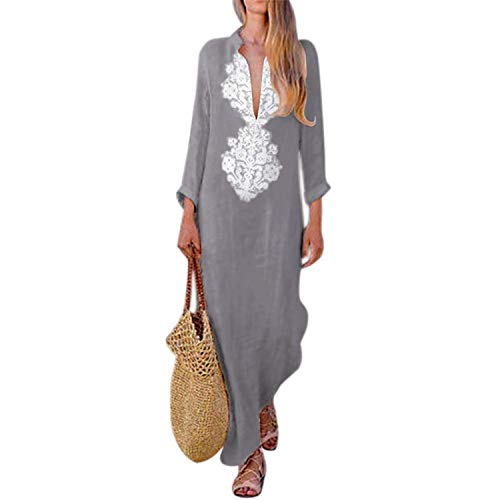 ShangSRS Vestito Estivo da Donna Abito Sciolto Senza Maniche Retro Lino Cotone Abiti Lunghi Donna Eleganti Camicetta Largo Casual Estivi Vestiti Donna Taglie Forti Club (Grigio, 2XL)