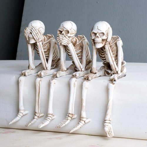 SHANGYU See Hear Speak No Evil Mini Scheletro Figurine Macabre Per Halloween Gotico H4K6 Decor Decorati Halloween Ufficio Decor Scrivania