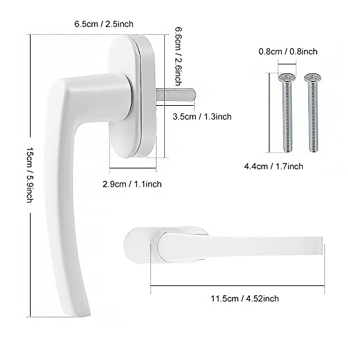 【Contenuto della confezione】: Il set include 2 maniglie delle finestre bianche con viti di montaggio, le maniglie delle finestre in lega di alluminio possono essere ruotate di 90 gradi, facili da usare