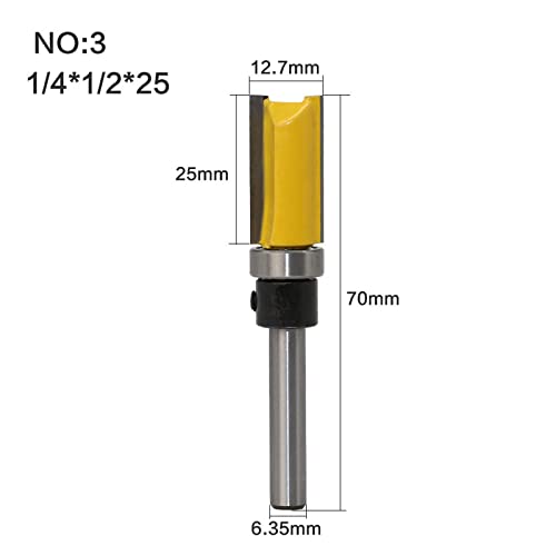 Set di punte per router: set di punte per router con modello di rifinitura a filo con gambo da 1/4 di pollice. diametro lama 1/2 pollice. Lunghezza lama 10 mm, 20 mm, 25 mm, 38 mm.