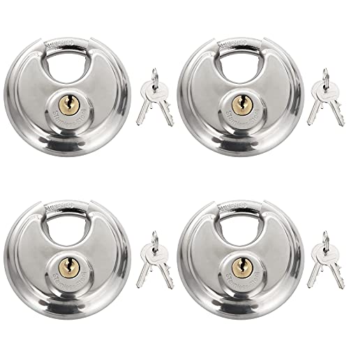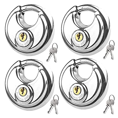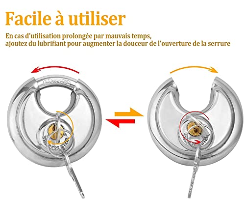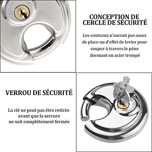 Shanqian - Lucchetto rotondo, 70 mm, in acciaio inossidabile con 8 chiavi, lucchetto resistente agli agenti atmosferici, nucleo di blocco in rame puro, biciclette, porte di magazzino