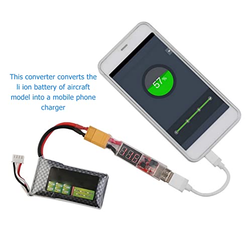 Shanrya Convertitore per Caricabatterie da XT60 a USB, Display Accurato 2-6S Plug and Play Facile Connessione Adattatore per Caricabatterie da Telefono Cellulare da XT60 a USB