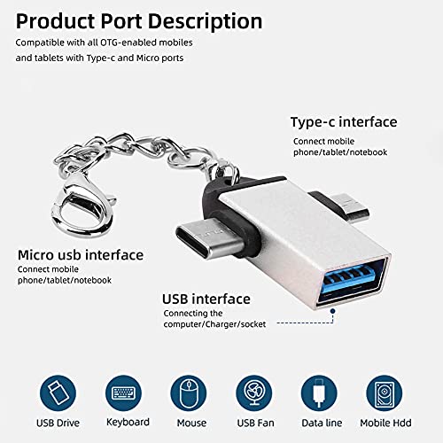 Shanrya Convertitore OTG 2 in 1, convertitore OTG, supporto stampante USB per tablet PC dispositivo USB(Catena abbinata in argento)
