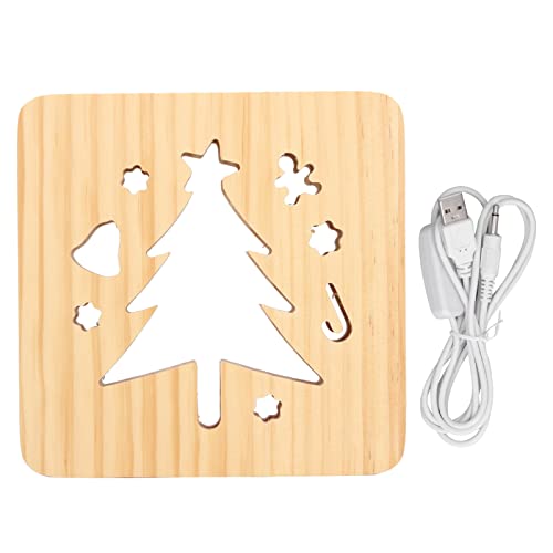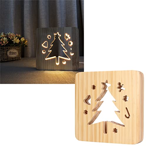 Shanrya Lampada in Legno 3D, Lampada da Intaglio in Legno Bianco Caldo per Camera da Letto