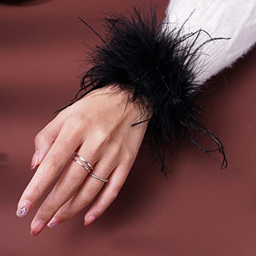 Yu Shaobo Polsini da polso con piume di struzzo per braccialetti da donna con piume di struzzo lungo con piume di tacchino polsino in pelliccia schiaffo fascia da polso, nero, 2 pezzi