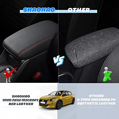 SHAOHAO Bracciolo centrale di protezione compatibile con Peugeot 208 e-208/2008 e-2008 pelle nera con linee rosse per console centrale bracciolo, protezione braccioli, accessorio auto