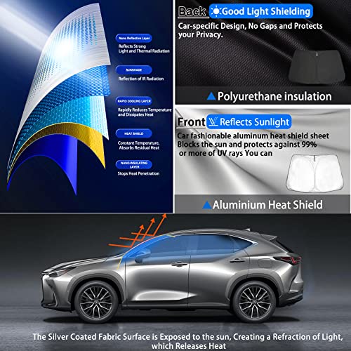 SHAOHAO Lexus NX 2° generazione 2022+ - Parasole pieghevole in tessuto rivestito in argento, protezione dai raggi UV e dal calore