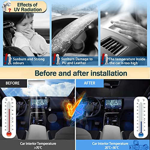 Blocca i raggi UV: protegge l'interno della vostra auto dai dannosi raggi UV. I dannosi raggi UV possono far sì che il tappeto e gli interni del vostro veicolo sbiadiscano e altre parti si rompano nel corso del tempo e si danneggiano. Il parasole è realizzato in tessuto riflettente di alta qualità e tiene efficacemente i raggi UV lontani dalla vostra auto.