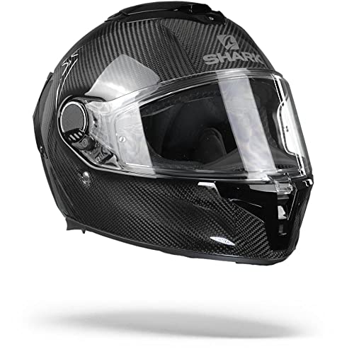 Sicurezza: in fibre di carbonio e fibre di vetro multiassiali riconosciute per la sua resistenza e leggerezza con un peso annunciato di 1450g /- 10 EPS multi-densità per un assorbimento degli urti ottimizzato "Shark Emergency Remove System" interno che consente una rapida rimozione dello scudo del collo e delle guance in caso di emergenza la fibbia Double-D più sicura sul mercato e l'unica omologata per la pista Visibilità: Schermo incolore di classe ottica 1 con spessori variabili che non distorce la visione