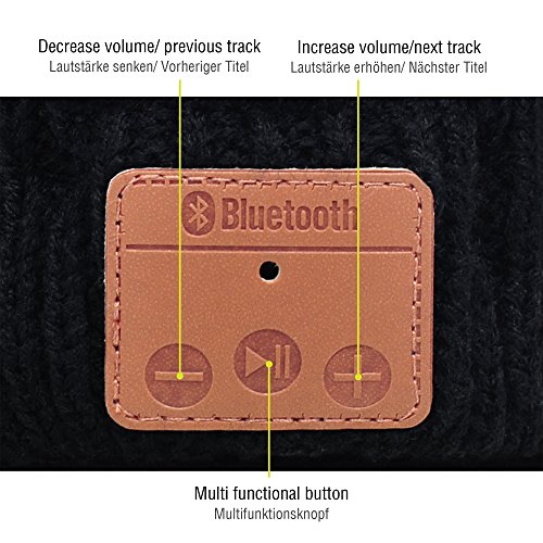Sharon Cappello Berretto Unisex Ricamato con Cuffie Stereo Auricolari e micrfono Vivavoce per Chiamate Wireless Via Bluetooth | Headset Music Beanie | Tasti di Comando Laterali | Colore Nero