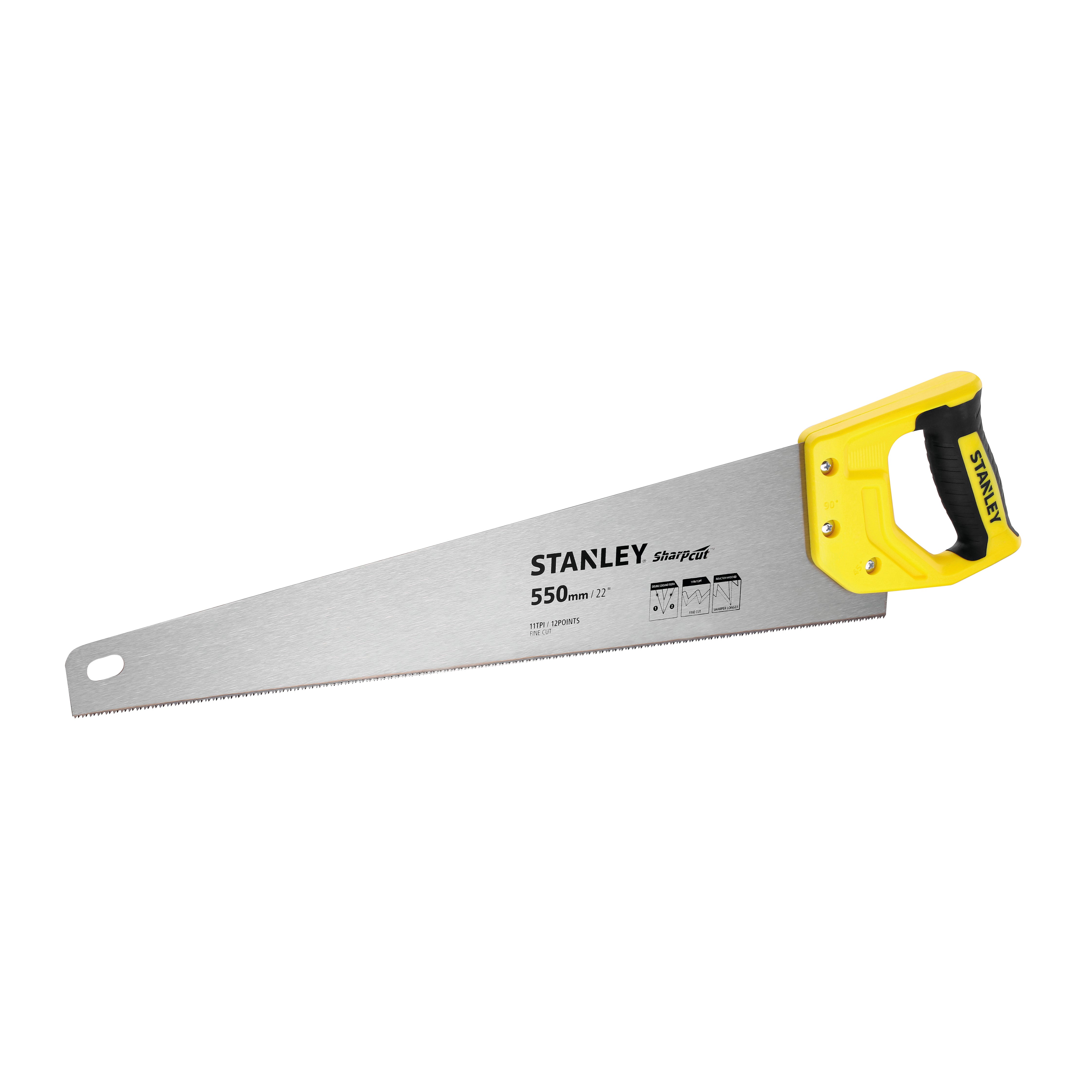 Segaccio SHARPCUT lunghezza mm 550 - 11 denti/pollice. Denti con doppia affilatura, spessore della lama 0,85 mm che riduce il rischio di deformazioni e assicura maggior controllo. Predisposizioni per tagli a 45° e 90° per marcatura veloce prima del taglio. Impugnatura bi-material per comfort e miglior presa
