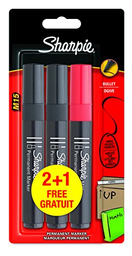 Sharpie M 15-20 pennarelli indelebili con punta a proiettile, colore: Rosso Confezione da 2 + 1 Nero & rosso