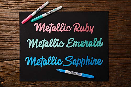 Libera la tua creatività con i 3 pennarelli Sharpie nei colori rubino metallizzato, smeraldo metallizzato e zaffiro metallizzato