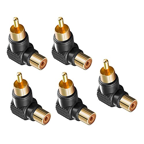 Sharplace 5pz Adattatori Connettori RCA Angolo Retto Maschio a Femmina 90 Gradi Nero - Nero