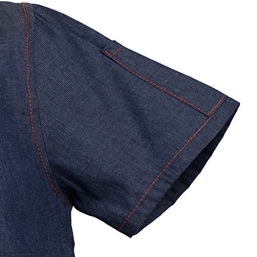 Sharplace Cappotto da Cuoco Camicia di Jeans Unisex Giacca per Adulti Maniche Corte - Blu, 2XL