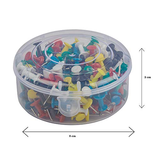 Sharry multiservices, puntine con testa in plastica e corpo in acciaio, diversi colori, contenitore da 200 pezzi Mix