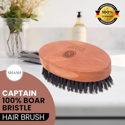 SHASH Dal 1869 Prodotto in Germania Captain Cepillo con Setole al 100% di Pelo di Cinghiale | per Capelli Sottili e Normali, Condiziona, Migliora la Texture, Stimola il Cuoio Capelluto