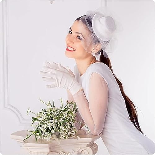 SHATCHI Guanti corti bianchi da donna, da capitano clown mago, travestimento da Babbo Natale, accessori per feste in maschera, Etichettalia unica, 11117
