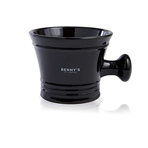 SHAVING BRUSH & BOWL GIFT SET - From Benny's of London - Our Shaving Brush with the Acrylic Black Mug for Lathering Shave Soap and Cream - Perfect Present and Gift Set for Men