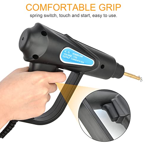 Saldatrice da 70 W per riparazioni plastiche: questa saldatrice da 70 W per riparazione di crepe può essere riscaldata a 400 °C/752 °F in 3-4 secondi. Rispetto ad altre saldatrici a bassa potenza, ha più potenza e una velocità di riscaldamento più veloce. La riparazione e la saldatura delle crepe sono solide e le parti in plastica in cui crepe e danni sono facili da saldare sono perfettamente rimontate.