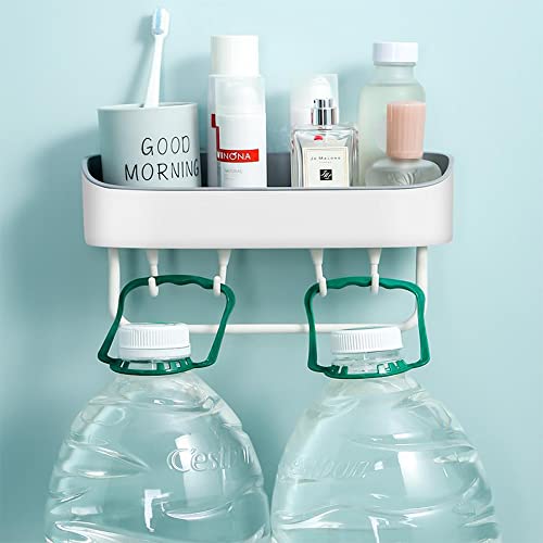SHBaizoy 2 pezzi Mensola doccia, Autoadesivo Mensole Bagno,senza foratura Cestino doccia,Cestino da bagno fissato al muro,Rack di stoccaggio per bagno/cucina (bianco)
