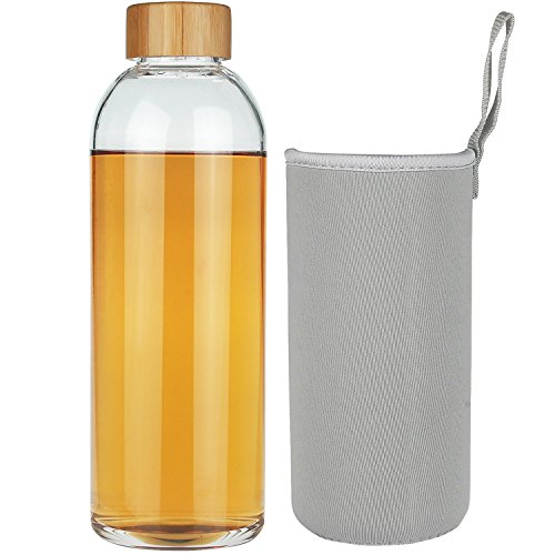 SHBRIFA Sport Bottiglia d'Acqua in Vetro, Borraccia in Vetro borosilicato con Custodia in Neoprene e Tappo in bambù 350 ml / 550 ml / 1000 ml