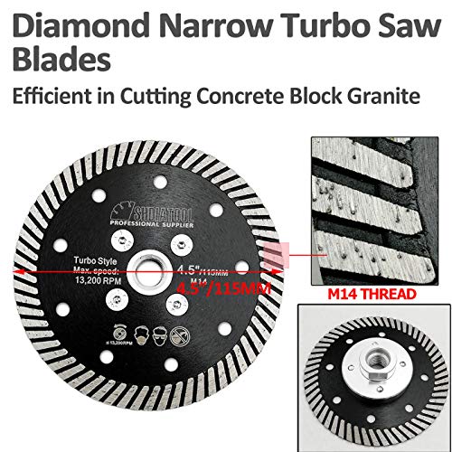 SHDIATOOL Disco Diamantato 2 Pezzi 115mm Lama per Sega Turbo Stretta con Flangia M14 per Porcellana Piastrella Ceramica Granito Marmo