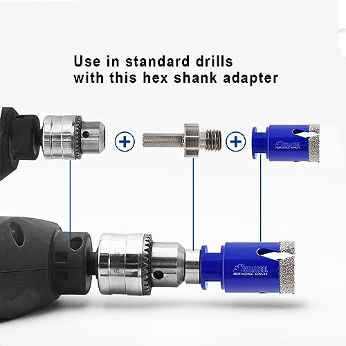 Le punte diamantate per piastrelle sono ideali per praticare fori a secco attraverso piastrelle in gres porcellanato, ceramica, piastrelle del bagno, granito e marmo, muratura, calcestruzzo, plastica dura con facilità.