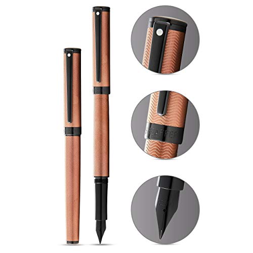 Sheaffer Intensity Inciso Bronzo PVD con Appuntamenti Nero Lucido e Penna Stilografica Pennino Medio
