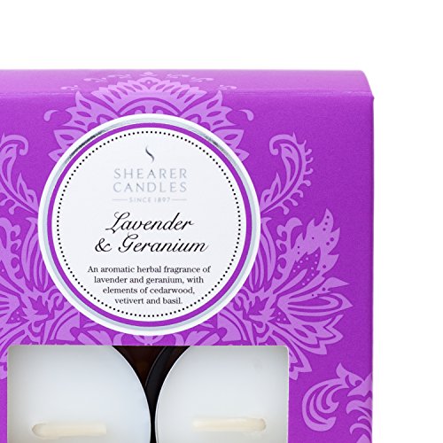 Shearer Candele "Lavanda e geranio profumati", confezione da 8, bianco