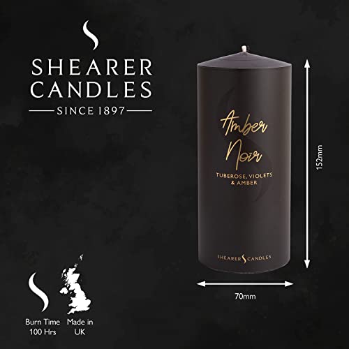 Shearer Candles Candela a colonna profumata Amber Noir da 15,2 cm, nera, 7 cm di lunghezza x 7 cm di larghezza x 15,2 cm di altezza (la confezione può variare)
