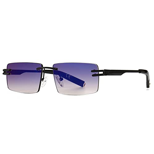 【Squisito e leggero】 Occhiali da sole rettangolari con montatura sottile senza montatura retrò, da indossare a lungo senza pressione. In combinazione con lenti per PC con montatura in legno, presentano uno stile elegante e di lusso. Comodi naselli in silicone riducono la pressione sul naso, comodi da indossare, senza allergie e adatti a tutti.