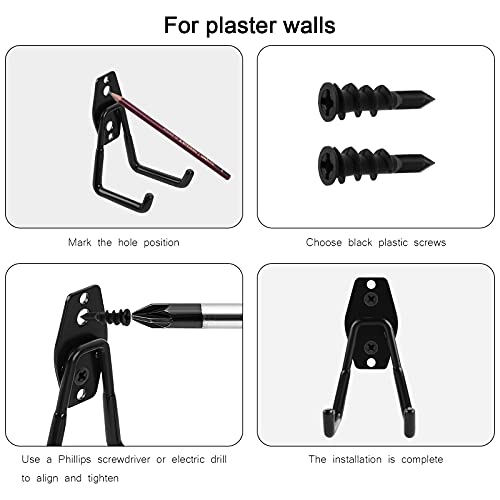 【Materiale durevole】Realizzato in acciaio di alta qualità e resistente rivestimento antiscivolo in PVC, il design a doppio gancio montato a parete è molto robusto e consente di risparmiare più spazio in garage, capannoni e cantine. Il rivestimento antiscivolo in PVC è liscio, resistente alla corrosione e non facile da graffiare