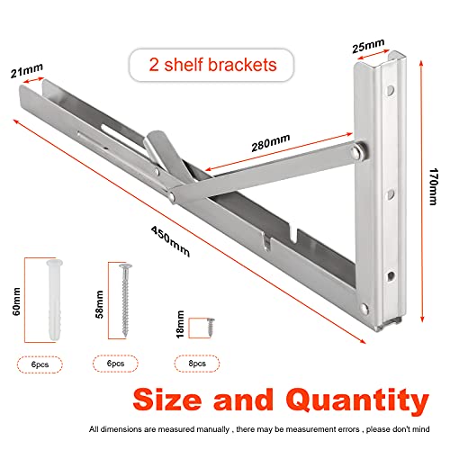 SHEENO 2 mensole pieghevoli da 18 pollici, 450 mm, in acciaio inox resistente