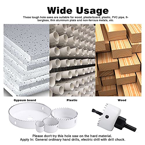 【Ampio Utilizzo】Queste robuste seghe a tazza sono adatte per legno, cartongesso, plastica, tubi in PVC, fibra di vetro, ecc. Soprattutto per legno, cartongesso, plastica.