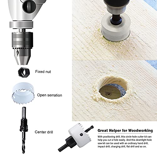 【Ottimo Aiuto per la Lavorazione del Legno】Con il trapano di posizionamento, questo kit di fori circolari può aiutarti a tagliare facilmente un foro. E questo kit per seghe a tazza da incasso può essere utilizzato con un normale trapano a mano, trapano a percussione, trapano di ricarica, trapano piatto e così via.