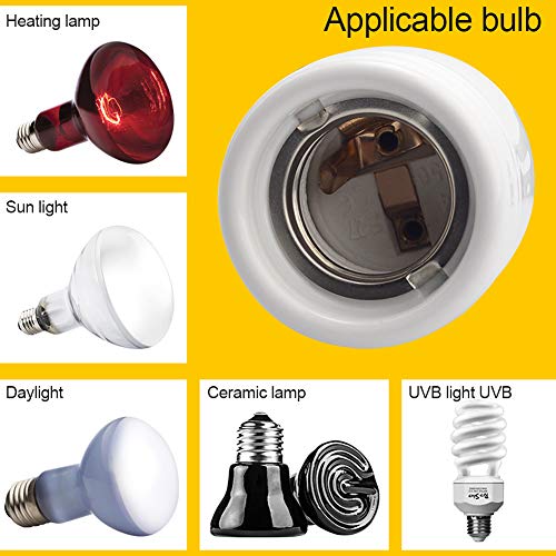Vieni con base lampadina E27, compatibile con una varietà di lampadine.Adatto per portalampada per rettili, può essere dotato di riscaldatori ceramici, UVA, UVB, riscaldatori a infrarossi, ecc. (Senza lampadina).