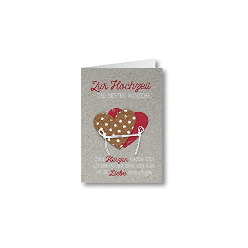 Sheepworld, Gruss & Co 90105 - Biglietto pieghevole in sughero, n. 46, per matrimonio con scritta in lingua tedesca "Die Beste Wünsche!" Due cuori si trovano e sono collegati in amore