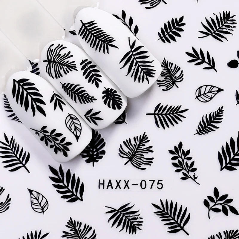 1 Sheet Black White 3D Bronzing Nail Art Stickers Flower Leaf Tree Green Sliders Summer DIY Decals for Nail Art Decoration