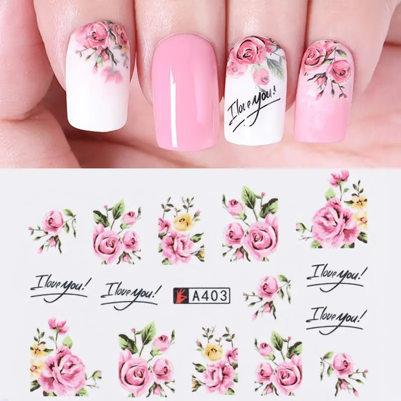 1 Sheet Elegant Ink Flower Nail Water Decals Transfer Stickers Flower Rose Mixed Patterns Colorful Nail Art DIY Decorations