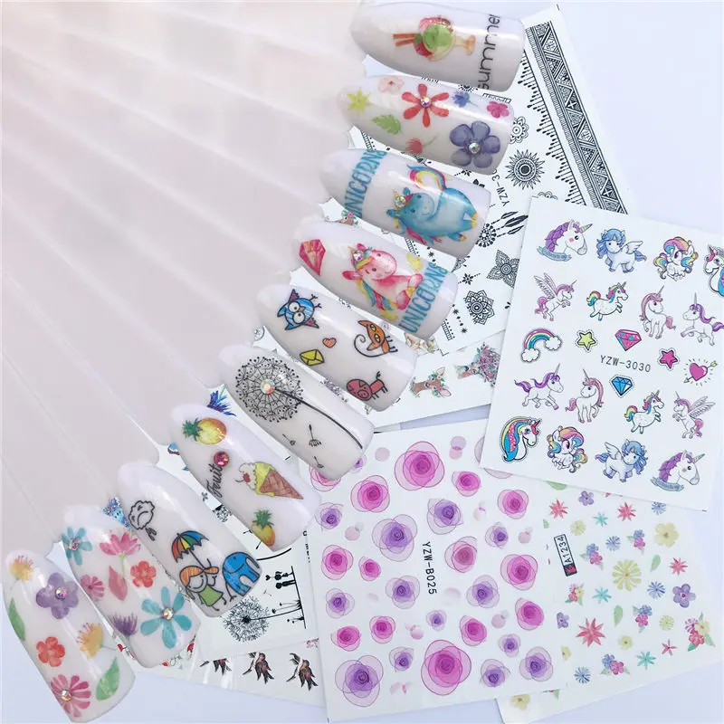 10 Sheet Stars / Flowers / Grass Styels Nail Decals Art Colorful Full Wraps for Nail Sticker Water Tips